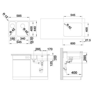 BLANCO SOLIS 340180-U roostevaba valamu vasakul 526129 joonis