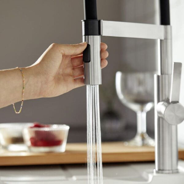 Väljatõmmatava pihustiga köögisegisti kraanid pakuvad kausis laiemat tegevusraadiust.