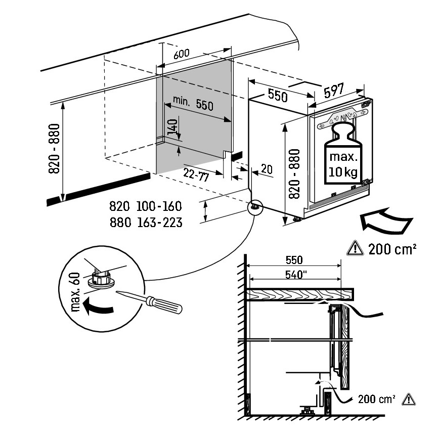 Tööpinna alla integreeritav sügavkülmik 82 cm